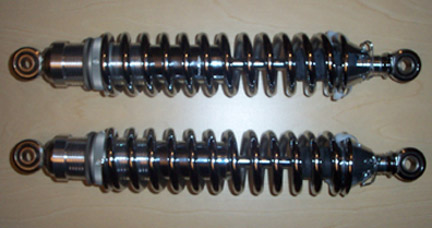 Our coil-over kit is for the solid axle FFR cobra. It will work with both the 4-link and 3-link rear suspension. It is 100% bolt-in and includes all required bolts and hardware. The shocks and springs are chrome plated. The coil-over adapter is aluminum. It uses a jam-nut to prevent ride height from changing. The kit comes standard with 250 pound/inch springs, but other rates can be special ordered. Our kit mounts up the same as FFR's kit, but offers a few more advantages....